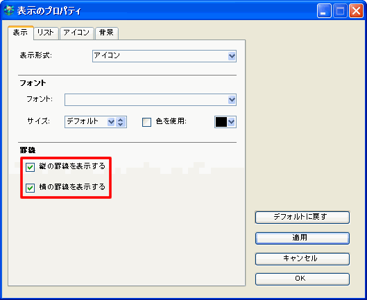 詳細表示で列の境界に縦の罫線を表示するには、[表示のプロパティ]フォームの[詳細表示のプロパティ]セクションで[縦の罫線を表示する]を選択してください。