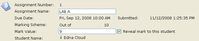 When a mark is entered on an assignment, the Assessment form is automatically updated and the associated fields on the Assessment form cannot be changed. If you need to change the mark displayed on the Assessment form, you must change the mark directly on the assignment.