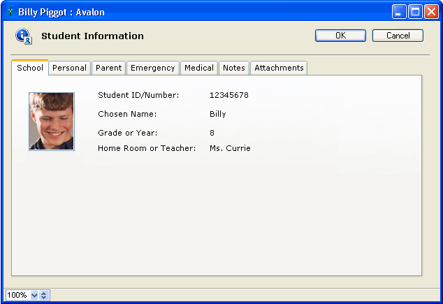 If you need to see a student's information quickly, simply double-click the student's name on the roster and then click Student Information. This brings up all of the student's personal information and contact information, including a student picture (if available).