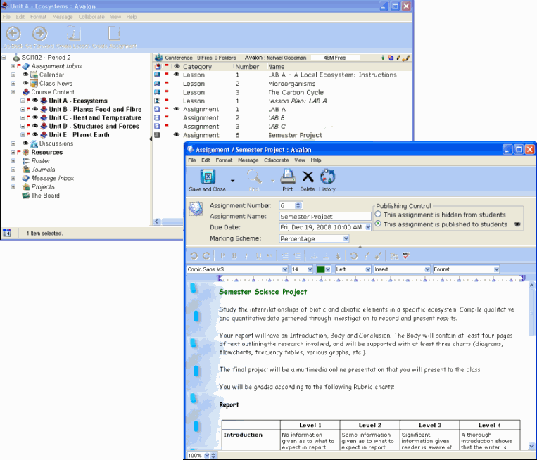 Using FirstClass ED, you can provide advanced assignments for extra credit, and additional assignments, resources, or practice work for students who need extra help. You determine the frequency of the assignments.