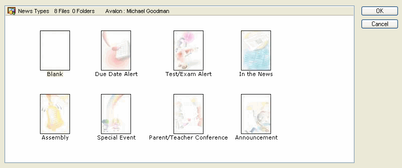 When he creates his SCI102 classes and the new objects within that class (lessons, modules, resources, and so on), he uses an Item Picker to choose templates for the different objects that FirstClass will use when it creates each object. For example, Michael Goodman creates a Module for his SCI102 class, and chooses Module with 5 Lessons and Assignments as his template. FirstClass automatically adds a module with five lessons and five assignments to Michael Goodman's SCI102 classroom's Course Content area.