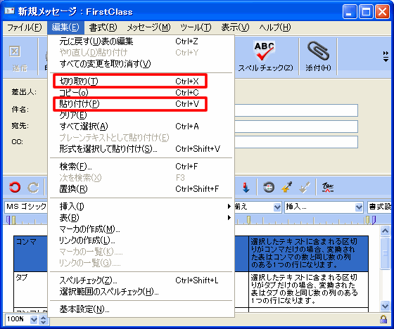 セル自体は削除せずにセルの本文だけを削除するには、行または列(または、表自体ではなく表全体の本文を)選択して、[Delete]キーを押してください。