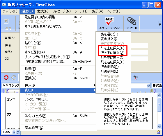複数の行を挿入する場合は、追加する行と同じ数の行を選択してください。新しい行が選択した行の上または下に挿入されます。
