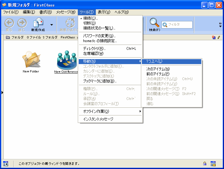 [ツール]>[移動]>[1つ上へ]を選択します。