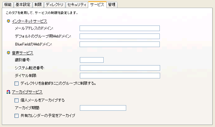 このタブを使用して、インターネットサービスと音声サービス(日本語版では使用しません)の組織単位を設定します。