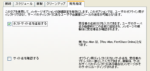 これにより、宛先に受信者の名前を入力するだけでメールが送信できます(サーバ名を入力する必要はありません)。この名前の確認は、メッセージの複製後に実行されます。
