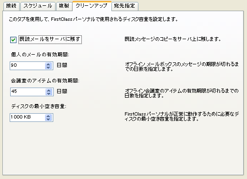 ディスク空き容量がこの値より少なくなると、FirstClassパーソナルでメール送信ができなくなり、情報が複製されなくなります。
