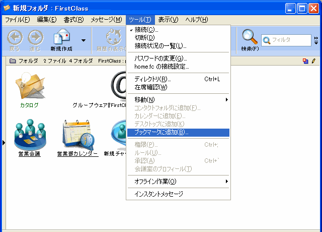 1       [ファイル]>[新規作成]>[新規ブックマーク]を選択します。