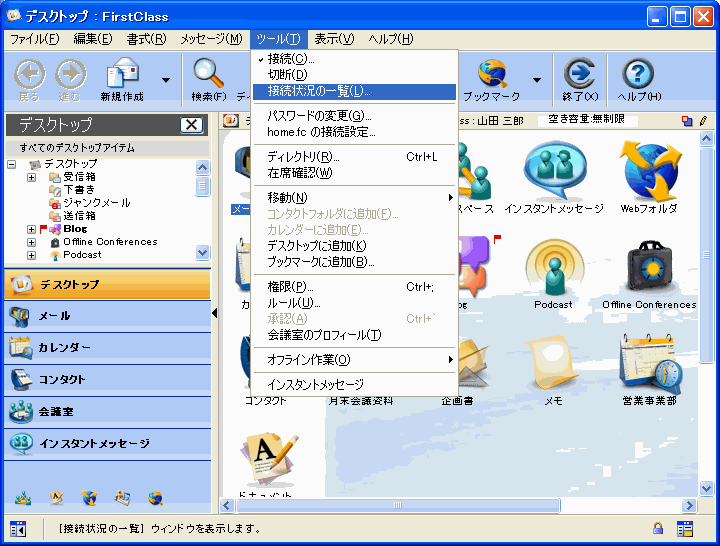 コンピュータが接続しているすべてのサーバと、その接続に使用しているユーザIDの一覧を表示するには、[ツール]>[接続状況の一覧]を選択してください。