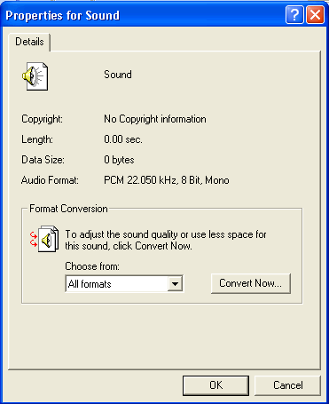 2 Choose File > Properties to open the Properties for Sound dialog box.