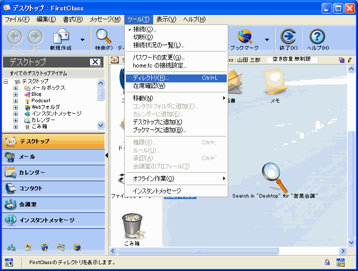 ディレクトリを閲覧するには、[ツール]>[ディレクトリ]を選択してください。