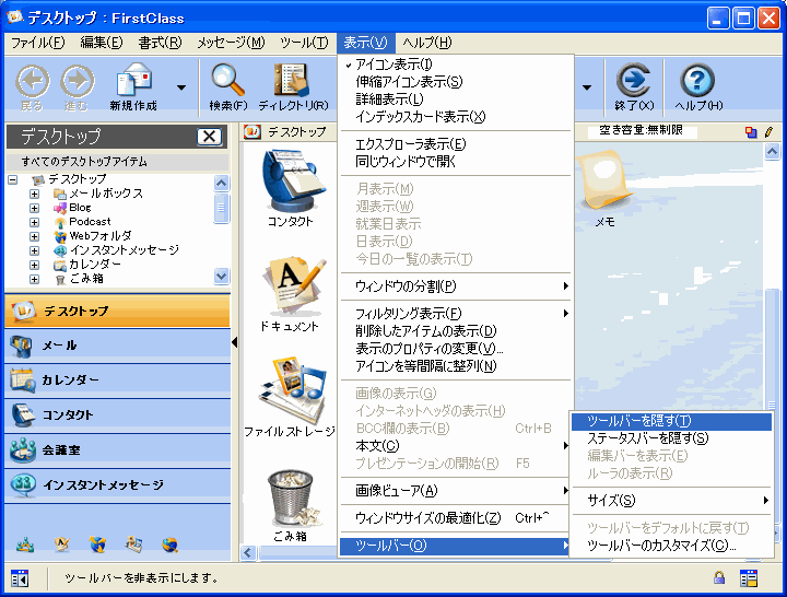 FirstClassのコンテナには、種類ごとに独自のツールバーがあります。ツールバーボタンは、よく使うコマンドへのショートカットとして機能します。このボタンは、メニューからコマンドを選択する代わりに使用できます。