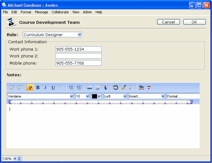 This area lists all of the courses in the system that have been created. Double-click any course to open it and view the current information.