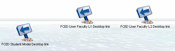 Open the FCED User Student, FCED User Faculty L1, and FCED User Faculty L2 objects on the admin Desktop.