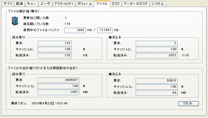 [ファイルの合計値]のデータをリセットしたい場合は、[リセット]ボタンをクリックしてください。