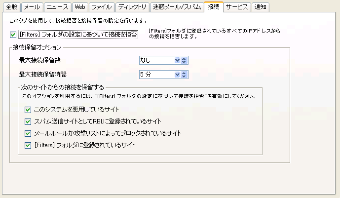 [Filters]フォルダの設定に基づいて接続を拒否 |