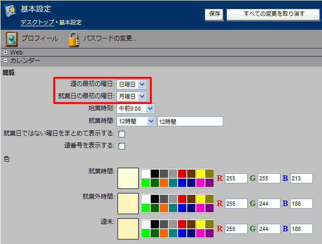 • 週の始まる曜日を変更する(月表示と週表示)