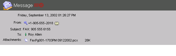 To open a fax message, click it. A fax message will look like this: