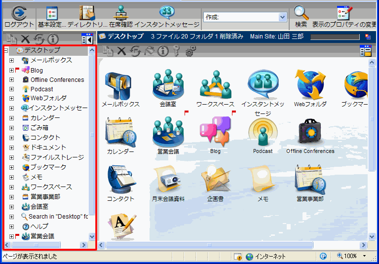ツリー表示でコンテナをクリックすると、そのコンテナの内容がメインペインに表示されます。ツリー表示でコンテナをダブルクリックすると、そのコンテナの内容が同じペインに表示されます。