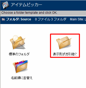 フォルダに使用するテンプレートを選択するよう求められます。[表示形式を引き継ぐ]テンプレートを選択すると、作成中のフォルダが入っているコンテナと同じレイアウトになります。